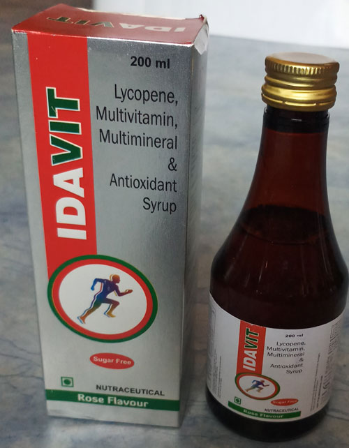 Lycopene - 1000 mcgZinc Sulphate - 8.00 mgManganese Choloride - 2.00 mg Copper Sulphate - 0.75 mgPotassium iodide - 100 mcg Sodium - 50.00 mcgVitamin E - 7.50 mg Vitamin C - 6.00 Vitamin B1 - 1.20 mg Vitamin B6 - 1.00 mg Vitamin A - 480 mcg Form - 200 ml syrup