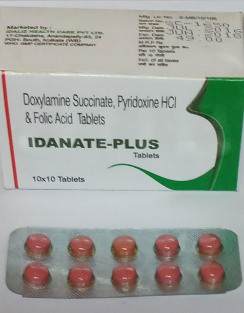 Doxylamine Succinate - 10 mgPyridoxine -5 mgFolic Acid - 5 mg Form - 10 tablets per strip