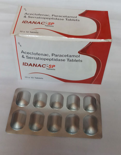 Aceclofenac - 100 mg Paracetamol - 325 mg Serratiopeptidase - 15 mg Form - 10 tablets per strip