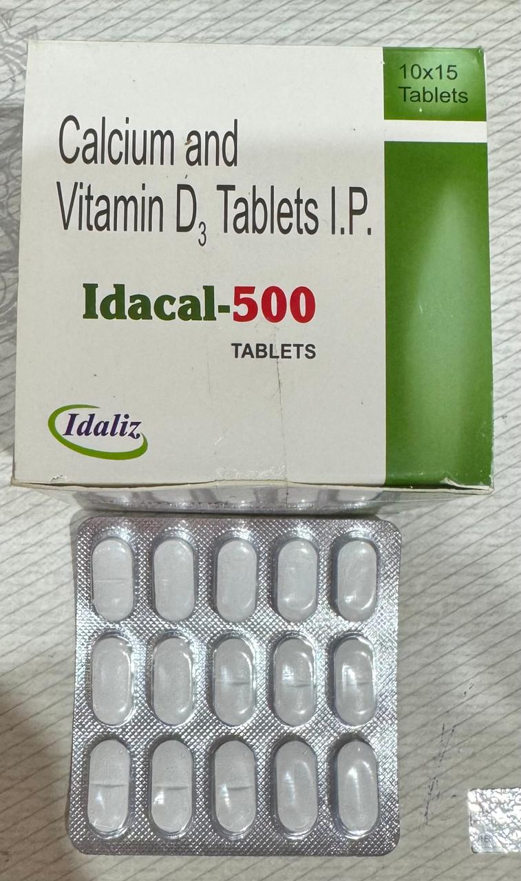 Calcium Carbonate - 500 mgVitamin D3 - 200 IU Form - 10 tablets per strip