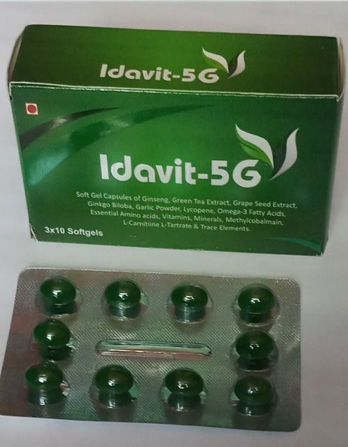 Soft Gel Capsules of Ginseng, Green Tea Extract, Grape Seed Extract, Ginkgo Biloba, Garlic Powder, Lycopene, Omega-3 Fatty Acids, Essential Amino acids, VItamins, Minerals, Methylcobalamin, L-Carnitine L-Tartrate & Trace Elements.